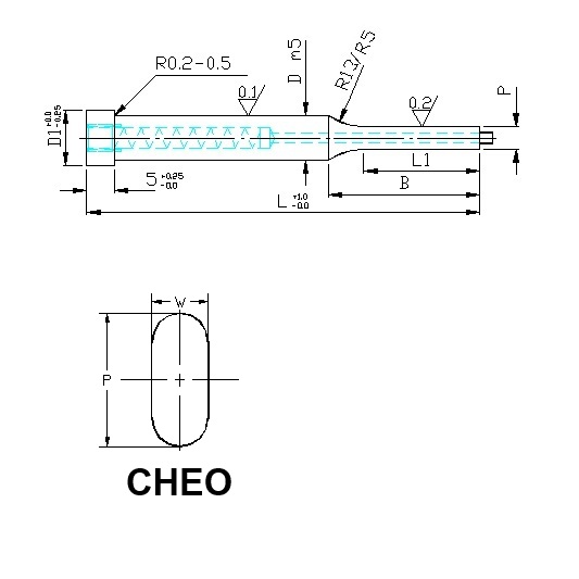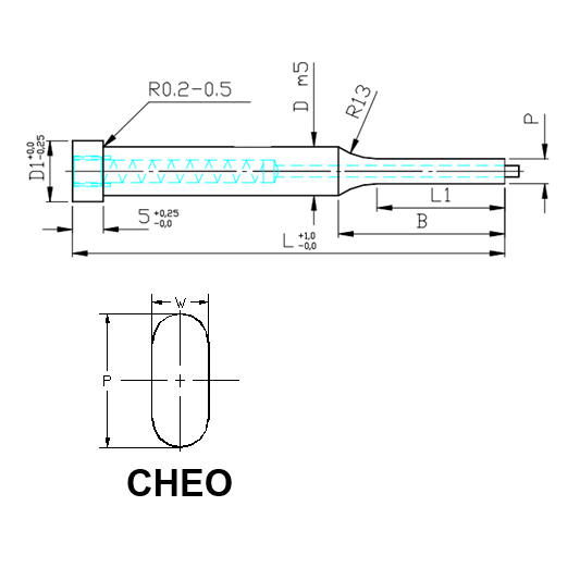 Muotopistin ejektorilla CHEO ovaali lieriökanta