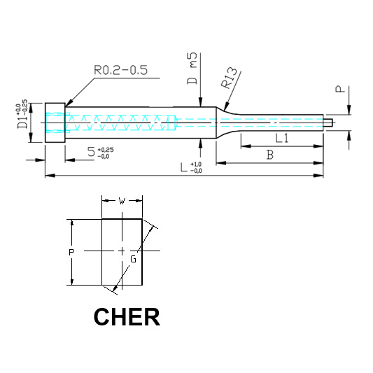 Muotopistin ejektorilla CHER suorakaide lieriökanta