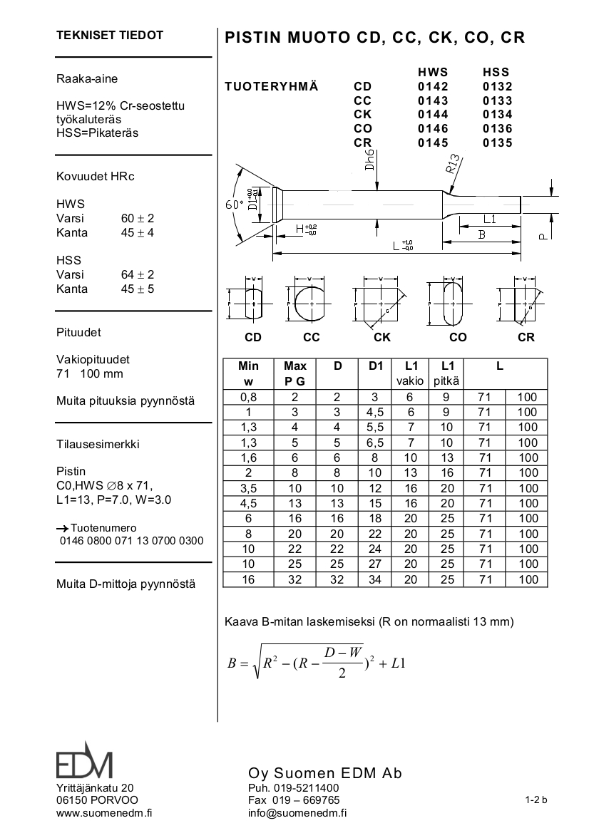 • Vakiopituudet: 71 ja 100 mm, muita pituuksia pyynnöstä.