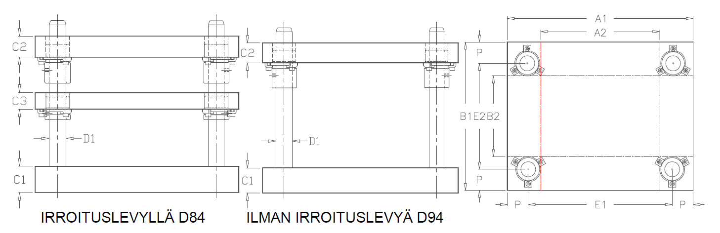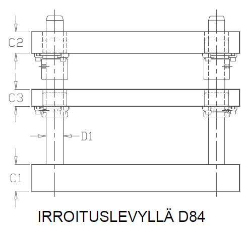 Työkalurunko nelipylväinen, liukujohteet D84/D94