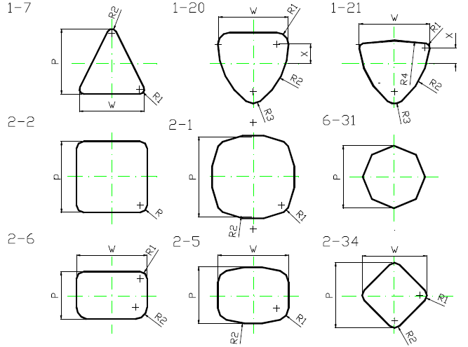 Esimerkkejä muodoista. Myös muita muotoja saatavilla.